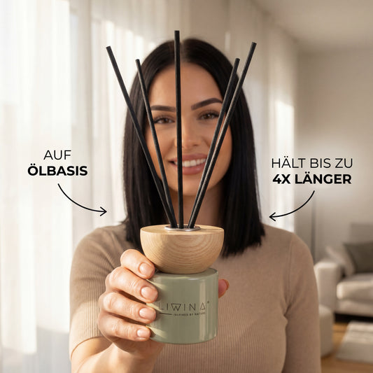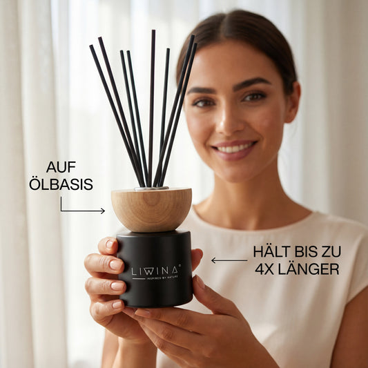 Liwina verbindet hochwertige, ölige Duftessenzen mit zeitlosem Design – für ein nachhaltiges Dufterlebnis, das dich Tag für Tag begleitet.